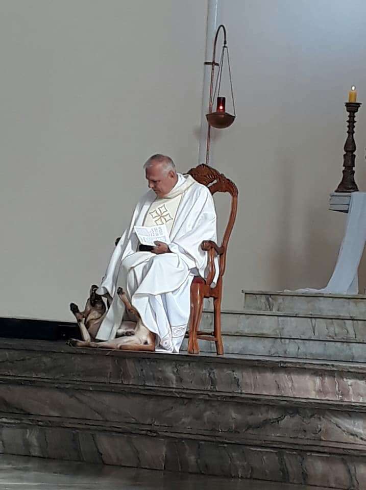 According to The Dodo the Brazilian priest whose name is Father José Geraldo Sobreira was leading a mass at the Catholic church when the dog decided it was time to have fun. Página para divulgações de. Canal oficial da Paróquia Nossa Senhora das Dores Areal-RJ.